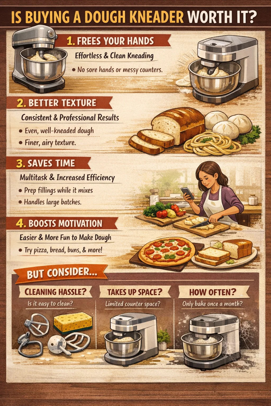 Användningsfrekvens: Om du bara äter pasta en gång i månaden kommer denna knådare troligen att bli en dammsamlare.
